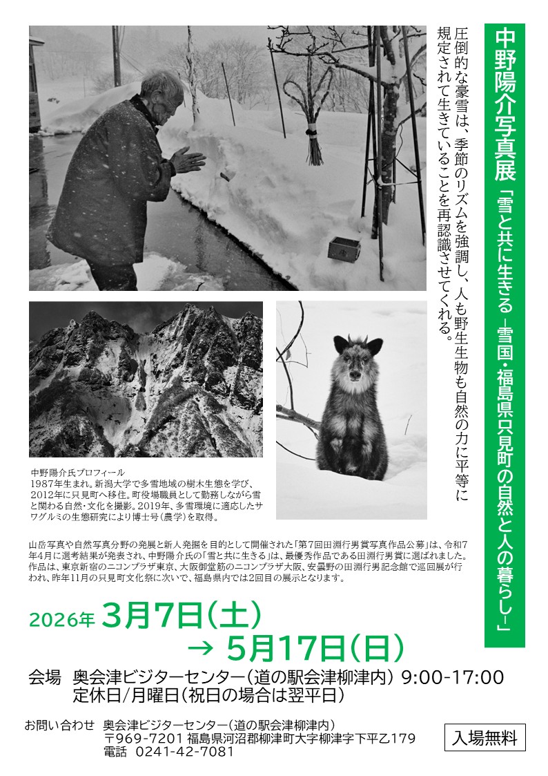 3月7日(土)より開催!「中野陽介氏写真展『雪と共に生きる-雪国・福島県只見町の自然と人の暮らし-』」